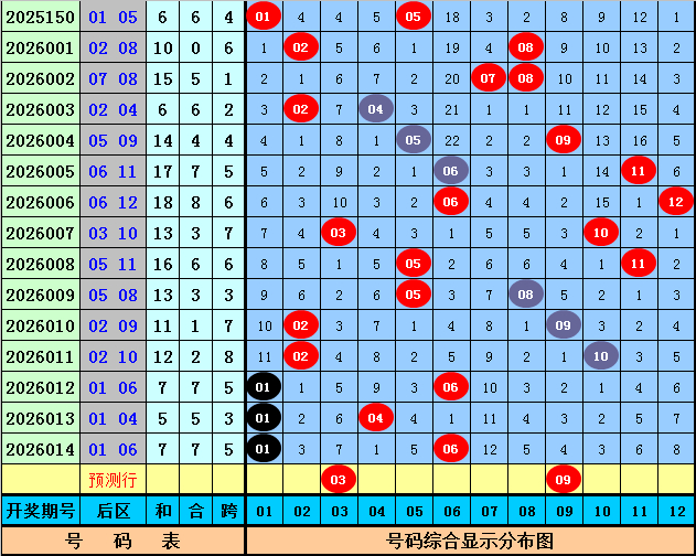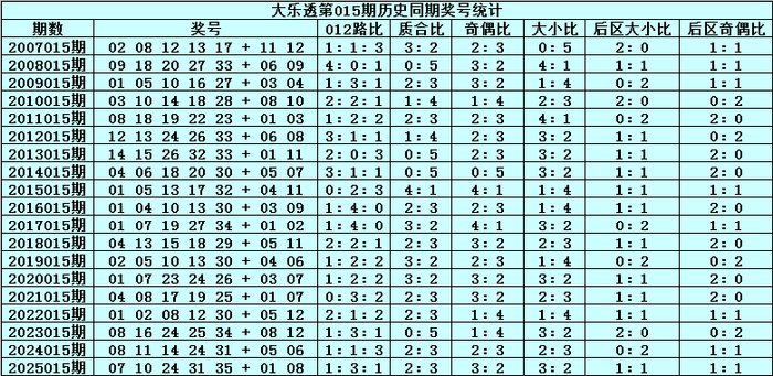 后区号码分析:第015期历史同时开奖中,后区两码全小开出5次,一大一小开出11次,全掀开出3次,本期后区展望出现一大一小奖号,参考号码03、09、10、12。