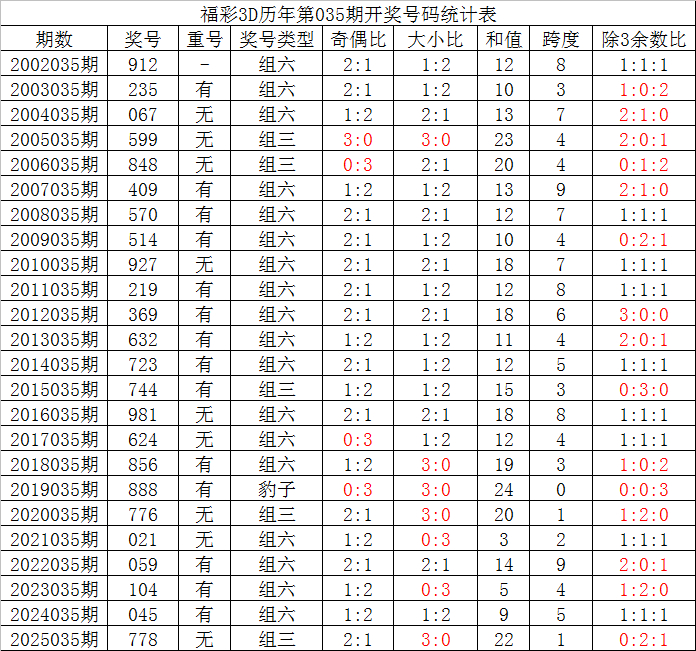 其中,豹子号码出现1次,组三号码开出5次,组六号码出现18次,组六号码当今贯穿1年莫得出现,本期本年同时看好开出组六号码。